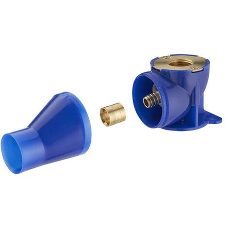 -Boitier plastique renfermant un coude femelle 15×21 pour sortir aisément de la cloison sans casser le tube PER